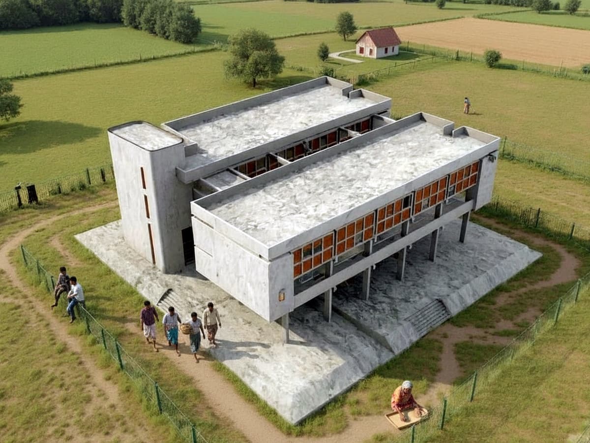 This design responds to both daily educational needs and emergency cyclone shelter requirements. Rooted in the principle of “designing the need,” it blends practicality, cultural identity, and disaster resilience.