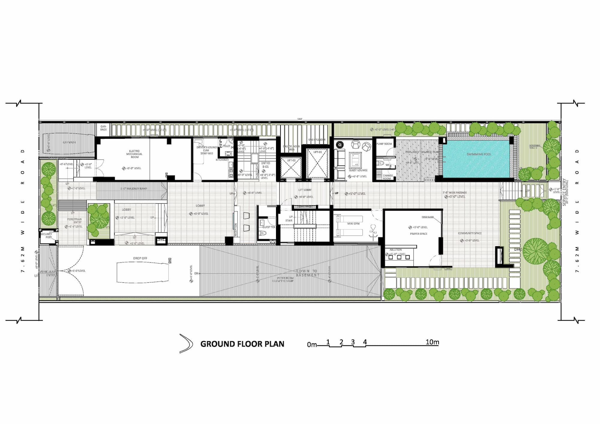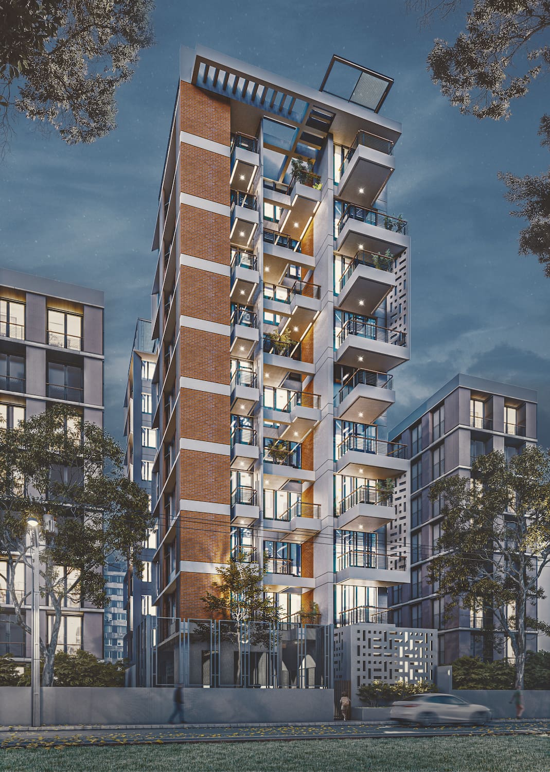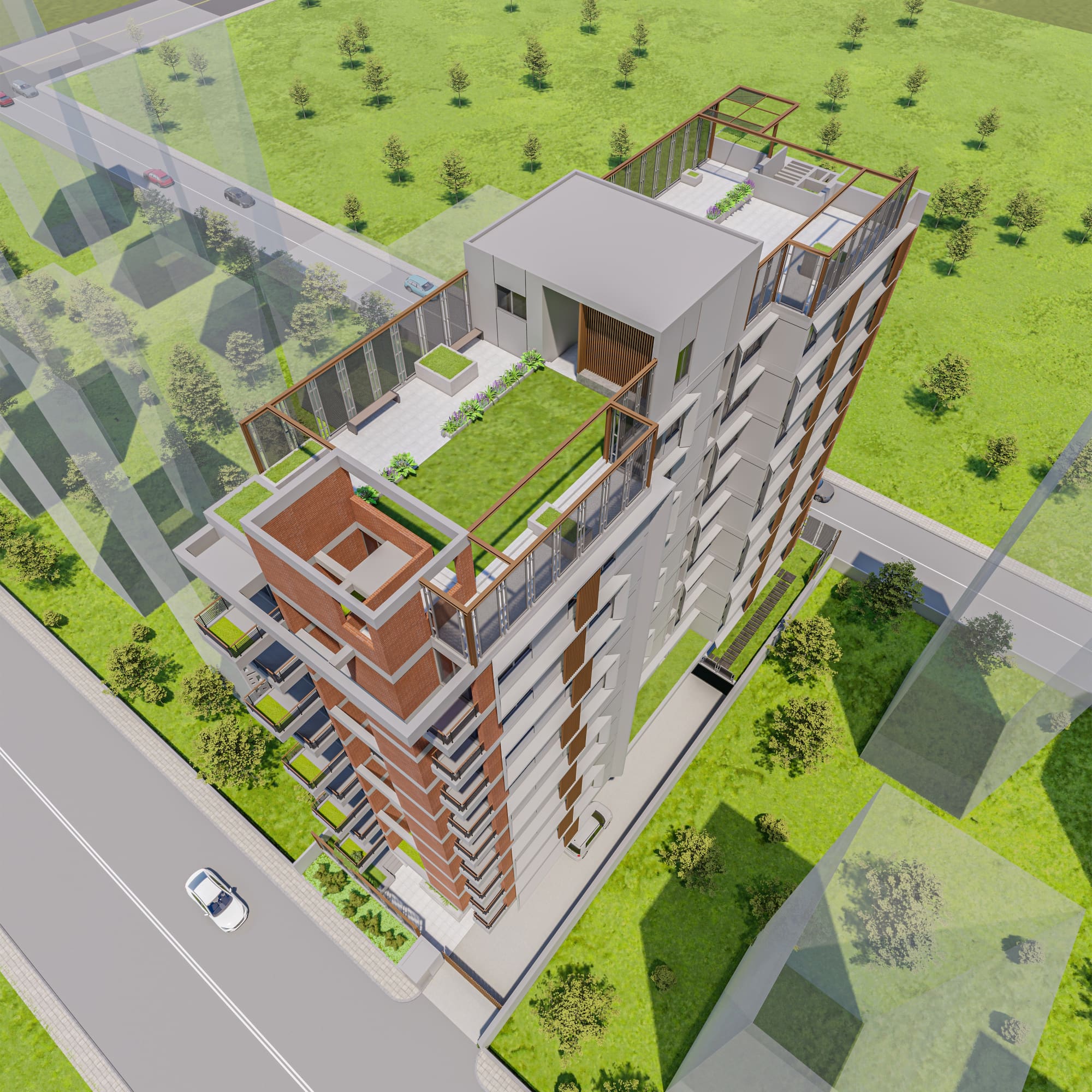 This residential development for Anwar Landmark stands on a 62-decimal (2,510 sqm) plot, with a total built-up area of 4,164.64 sqm. Rising to Basement + 10 stories, the design responds to the demands of modern urban living through efficient space planning, natural light, and ventilation. Conceived in 2021, the architecture blends contemporary aesthetics with functional layouts, ensuring both privacy and community-oriented spaces. The building is envisioned as a refined residential address that reflects promoter’s commitment to quality and thoughtful urban design.